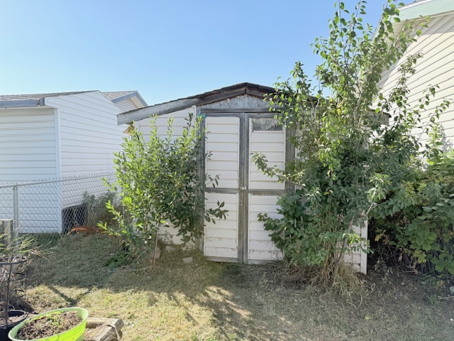 This bright & spacious mobile home is open plan & has a great layout. The kitchen has an abundance of cabinets & decorative tile backsplash, appliances include a new fridge (6 mos.), built-in dishwasher (1 ½ yrs) & built-in microwave. The living room is large with a ceiling fan & the large primary bdrm has an ensuite with a faux glass wall, 2 person jacuzzi tub with new tap & a walk-in shower. The 2nd & 3rd bdrms are located on the opposite end of the home near the main 4 pc bthrm. The HWT was replaced in approx. 2015 & the heat tape was just replaced in Oct. 2025. Washer & Dryer are included. There is a good sized partially fenced yard with one 10’x12’ storage shed & side by side parking. Some upgrades required. This community offers city bus services, great park and playground areas, a community hall, and is situated close to major shopping and recreation centers. Lot rent is $797/month and property taxes are $854.59/year. Immediate Possession! Don’t wait to view!