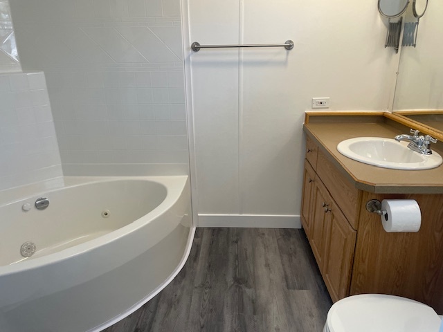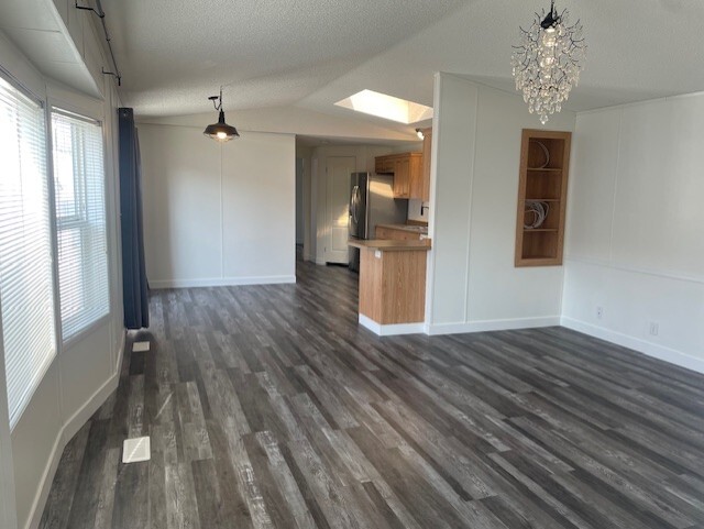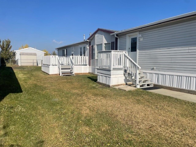 This bright central air conditioned home has cathedral ceilings and has been freshly painted. There is decorative wainscotting at the spacious entry and laminate or new vinyl plank flooring throughout the entire home. The large living room has a chandelier and opens into the kitchen which has a skylight, pantry, new tap and the appliances include a newer SS fridge and newer built-in microwave. There are garden doors that lead off the dining area onto a freshly painted deck. The master bedroom is a great size and has a walk-in closet and an ensuite with a cathedral ceiling, skylight and an oval jacuzzi tub. The second bedroom also has a walk-in closet and the 2nd and 3rd bedrooms are conveniently located on the other end of the home near the main bathroom. Washer, dryer and central vacuum are included. The HWT was replaced in 2013, and the heat tape is approx. 2 yrs old. Lot rent is approx. $790/year. Property taxes are approx. $1163.40/year. Available for immediate possession! Don’t wait to view this lovely home!