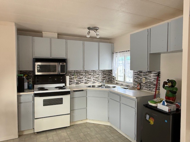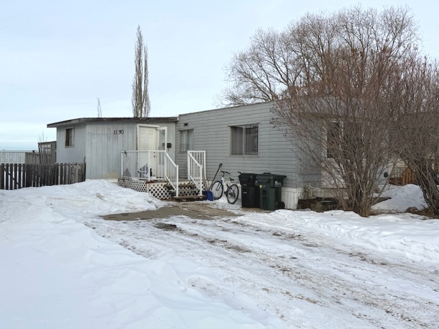 This three bedroom home has had some great upgrades started for you. There is new laminate in the hallway and back two bedrooms. The bathroom has a newer vanity with double sinks, wall tile tub surround and newer plumbing fixtures. The front window is newer vinyl, the furnace was installed approx. 6 yrs ago and the HWT is approx. 5 years old. The plumbing was brought up inside the home and changed to pex. Outside the home has been vinyl sided. This lot backs onto a green space and the front faces a park / playground area. There is also an unheated porch addition with plenty of room for storage and a fully fenced yard. This home does require some maintenance and updating. Lot rent is $715/month and prop taxes are approx. $550/year.Don't wait to view!